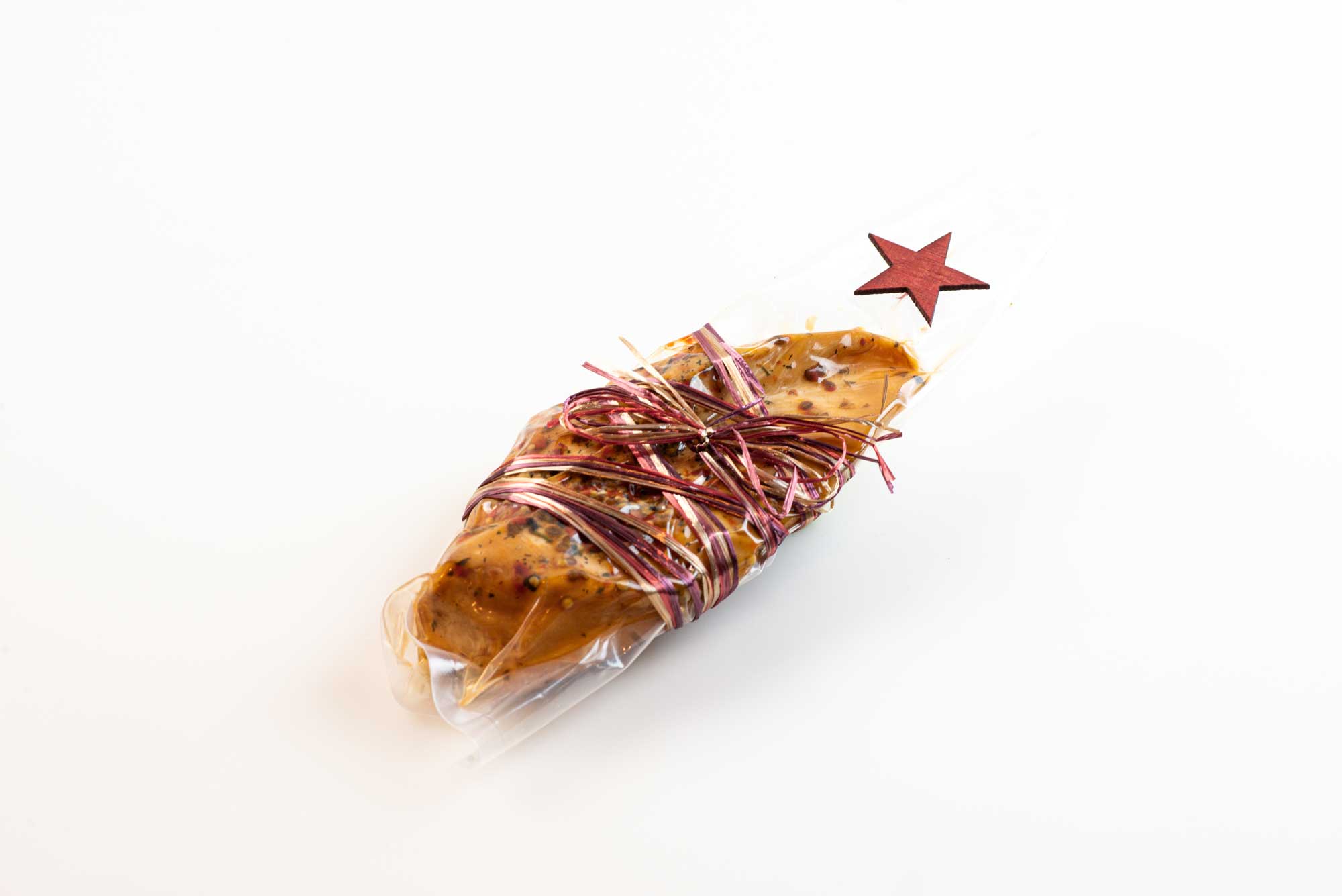 Ein 150g schweres Pouletbrüstli liebevoll mit verschiedenen Bänder verpackt. Ideal als Mitarbeitergeschenk oder kleines gesundes und essbares Mitbringsel.